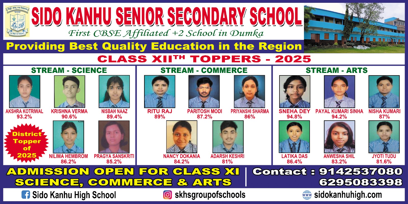 5. Swati Raj, 11th standard student of Sido Kanhu High School Dumka got first place in the speech competition organized at Santhal Pargana Pramandal level on the occasion of Swami Vivekanand's birth anniversary under the joint supervision of Sports Directorate and District Administration. In which sports officer Tufan Poddar was awarded with ?10000 as prize and selected for state level competition held in Ranchi.